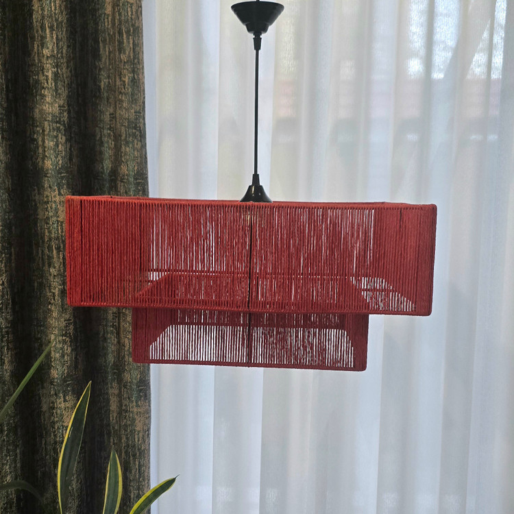 لوستر دستساز بومهو با فرم مربع شکل مناسب فضاهای ساده و مینیمال می باشد که با توجه به نوع بافت می تواند کننرل نور مناسبی برای کاربر ایجاد کند.تنوع در رنگ و نخ انتخاب برای مشتری رابسیار ازاد می گذارد و امکان ست کردن با تم رنگی تمام فضاها فراهم می باشد.